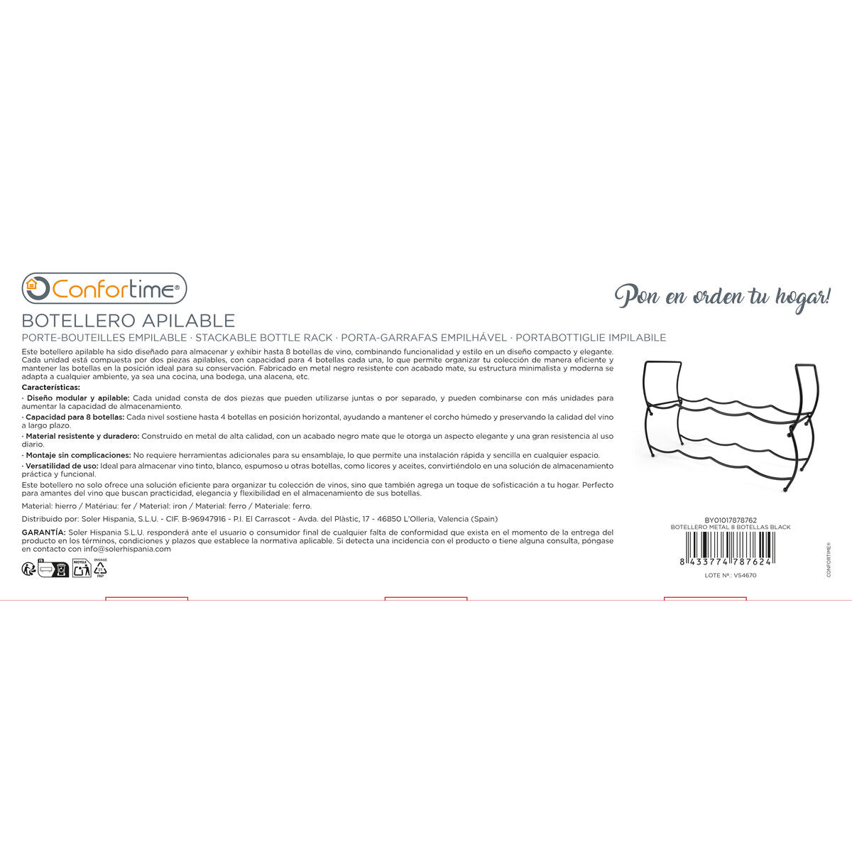 {"id":7921090592847,"title":"Bottle rack Confortime Black 43 x 15 x 28 cm (8 Units)","handle":"bottle-rack-confortime-black-43-x-15-x-28-cm-8-units","description":"If you like to take care of every detail in your home and own the latest products that will make your life easier, purchase \u003cb\u003eBottle rack Confortime Black 43 x 15 x 28 cm (8 Units)\u003c\/b\u003e at the best price.\u003cbr\u003e\u003cbr\u003e\u003cul\u003e\n\u003cli\u003eType: Bottle rack\u003c\/li\u003e\n\u003cli\u003eColour: Black\u003c\/li\u003e\n\u003cli\u003eMaterial: Metal\u003c\/li\u003e\n\u003cli\u003eUnits: 8 Units\u003c\/li\u003e\n\u003cli\u003eApprox. dimensions: 43 x 15 x 28 cm\u003c\/li\u003e\n\u003c\/ul\u003e\u003cb\u003eFrom 6,00 \/ u\u003c\/b\u003e\u003cbr\u003e\u003cbr\u003e\u003cb\u003eGeneral Product Safety Regulations information:\u003c\/b\u003e\u003cbr\u003eSOLER HISPANIA S.L.U.\u003cbr\u003eAVDA. DEL PLASTIC 17, OLLERIA, VALENCIA (SPAIN)\u003cbr\u003e46850 - Olleria\u003cbr\u003e+34962208151\u003cbr\u003einfo@solerhispania.com\u003cbr\u003ehttps:\/\/www.solerhispania.com\u003cbr\u003e","published_at":"2025-11-28T01:21:03+01:00","created_at":"2025-11-28T01:21:04+01:00","vendor":"Confortime","type":"Home and cooking, Storage and organisation","tags":["Brand_Confortime","category-reference-2480","category-reference-2734","Condition_NEW","Price_20 - 50"],"price":4800,"price_min":4800,"price_max":4800,"available":false,"price_varies":false,"compare_at_price":6892,"compare_at_price_min":6892,"compare_at_price_max":6892,"compare_at_price_varies":false,"variants":[{"id":43865997639759,"title":"Default Title","option1":"Default Title","option2":null,"option3":null,"sku":"S2241490","requires_shipping":true,"taxable":true,"featured_image":null,"available":false,"name":"Bottle rack Confortime Black 43 x 15 x 28 cm (8 Units)","public_title":null,"options":["Default Title"],"price":4800,"weight":6710,"compare_at_price":6892,"inventory_management":"shopify","barcode":"4899888826149","requires_selling_plan":false,"selling_plan_allocations":[],"quantity_rule":{"min":1,"max":null,"increment":1}}],"images":["\/\/bigbuy-kitchen.myshopify.com\/cdn\/shop\/files\/s2241490_p2_icon0_c7b3a9a7-e6c0-4903-af95-91637b04cbf7.jpg?v=1766193061","\/\/bigbuy-kitchen.myshopify.com\/cdn\/shop\/files\/S2241490_P00_55028971-d133-4909-969d-38693230cdb9.jpg?v=1766193061","\/\/bigbuy-kitchen.myshopify.com\/cdn\/shop\/files\/S2241490_P10_084150e9-874f-4a96-92a9-7d7608e09d82.jpg?v=1766193061","\/\/bigbuy-kitchen.myshopify.com\/cdn\/shop\/files\/S2241490_P20_160b8c39-9c47-489b-88f7-b31a102a72ec.jpg?v=1766193061","\/\/bigbuy-kitchen.myshopify.com\/cdn\/shop\/files\/S2241490_P30_d7dfcdfb-4e71-466a-99a7-eec33e18c9ec.jpg?v=1766193061","\/\/bigbuy-kitchen.myshopify.com\/cdn\/shop\/files\/S2241490_P40_b5837792-ac17-453b-8e5d-3c4cbfad70b8.jpg?v=1766193061"],"featured_image":"\/\/bigbuy-kitchen.myshopify.com\/cdn\/shop\/files\/s2241490_p2_icon0_c7b3a9a7-e6c0-4903-af95-91637b04cbf7.jpg?v=1766193061","options":["Title"],"media":[{"alt":"V3HA972C1AA3755D45CA53E7D060423CB37R7551237P1","id":33390888222799,"position":1,"preview_image":{"aspect_ratio":1.0,"height":1200,"width":1200,"src":"\/\/bigbuy-kitchen.myshopify.com\/cdn\/shop\/files\/s2241490_p2_icon0_c7b3a9a7-e6c0-4903-af95-91637b04cbf7.jpg?v=1766193061"},"aspect_ratio":1.0,"height":1200,"media_type":"image","src":"\/\/bigbuy-kitchen.myshopify.com\/cdn\/shop\/files\/s2241490_p2_icon0_c7b3a9a7-e6c0-4903-af95-91637b04cbf7.jpg?v=1766193061","width":1200},{"alt":"V3HE374D29AD6A9AC0D39D06A26CB26FEF4R7551238P2","id":33390888255567,"position":2,"preview_image":{"aspect_ratio":1.0,"height":1200,"width":1200,"src":"\/\/bigbuy-kitchen.myshopify.com\/cdn\/shop\/files\/S2241490_P00_55028971-d133-4909-969d-38693230cdb9.jpg?v=1766193061"},"aspect_ratio":1.0,"height":1200,"media_type":"image","src":"\/\/bigbuy-kitchen.myshopify.com\/cdn\/shop\/files\/S2241490_P00_55028971-d133-4909-969d-38693230cdb9.jpg?v=1766193061","width":1200},{"alt":"V3H9B919CDFE4D4312DD0A9835B14731C8ER7551239P3","id":33390888288335,"position":3,"preview_image":{"aspect_ratio":1.0,"height":1200,"width":1200,"src":"\/\/bigbuy-kitchen.myshopify.com\/cdn\/shop\/files\/S2241490_P10_084150e9-874f-4a96-92a9-7d7608e09d82.jpg?v=1766193061"},"aspect_ratio":1.0,"height":1200,"media_type":"image","src":"\/\/bigbuy-kitchen.myshopify.com\/cdn\/shop\/files\/S2241490_P10_084150e9-874f-4a96-92a9-7d7608e09d82.jpg?v=1766193061","width":1200},{"alt":"V3HEC281369596A320054EFC680A7671752R7551240P4","id":33390888321103,"position":4,"preview_image":{"aspect_ratio":1.0,"height":1200,"width":1200,"src":"\/\/bigbuy-kitchen.myshopify.com\/cdn\/shop\/files\/S2241490_P20_160b8c39-9c47-489b-88f7-b31a102a72ec.jpg?v=1766193061"},"aspect_ratio":1.0,"height":1200,"media_type":"image","src":"\/\/bigbuy-kitchen.myshopify.com\/cdn\/shop\/files\/S2241490_P20_160b8c39-9c47-489b-88f7-b31a102a72ec.jpg?v=1766193061","width":1200},{"alt":"V3HB85A8533EF70FF615BC35A7FBD66964FR7551241P5","id":33390888353871,"position":5,"preview_image":{"aspect_ratio":1.0,"height":1200,"width":1200,"src":"\/\/bigbuy-kitchen.myshopify.com\/cdn\/shop\/files\/S2241490_P30_d7dfcdfb-4e71-466a-99a7-eec33e18c9ec.jpg?v=1766193061"},"aspect_ratio":1.0,"height":1200,"media_type":"image","src":"\/\/bigbuy-kitchen.myshopify.com\/cdn\/shop\/files\/S2241490_P30_d7dfcdfb-4e71-466a-99a7-eec33e18c9ec.jpg?v=1766193061","width":1200},{"alt":"V3H8AA1961EFD01C2ED464D4FEB6E86D91AR7551242P6","id":33390888386639,"position":6,"preview_image":{"aspect_ratio":1.0,"height":1200,"width":1200,"src":"\/\/bigbuy-kitchen.myshopify.com\/cdn\/shop\/files\/S2241490_P40_b5837792-ac17-453b-8e5d-3c4cbfad70b8.jpg?v=1766193061"},"aspect_ratio":1.0,"height":1200,"media_type":"image","src":"\/\/bigbuy-kitchen.myshopify.com\/cdn\/shop\/files\/S2241490_P40_b5837792-ac17-453b-8e5d-3c4cbfad70b8.jpg?v=1766193061","width":1200}],"requires_selling_plan":false,"selling_plan_groups":[],"content":"If you like to take care of every detail in your home an