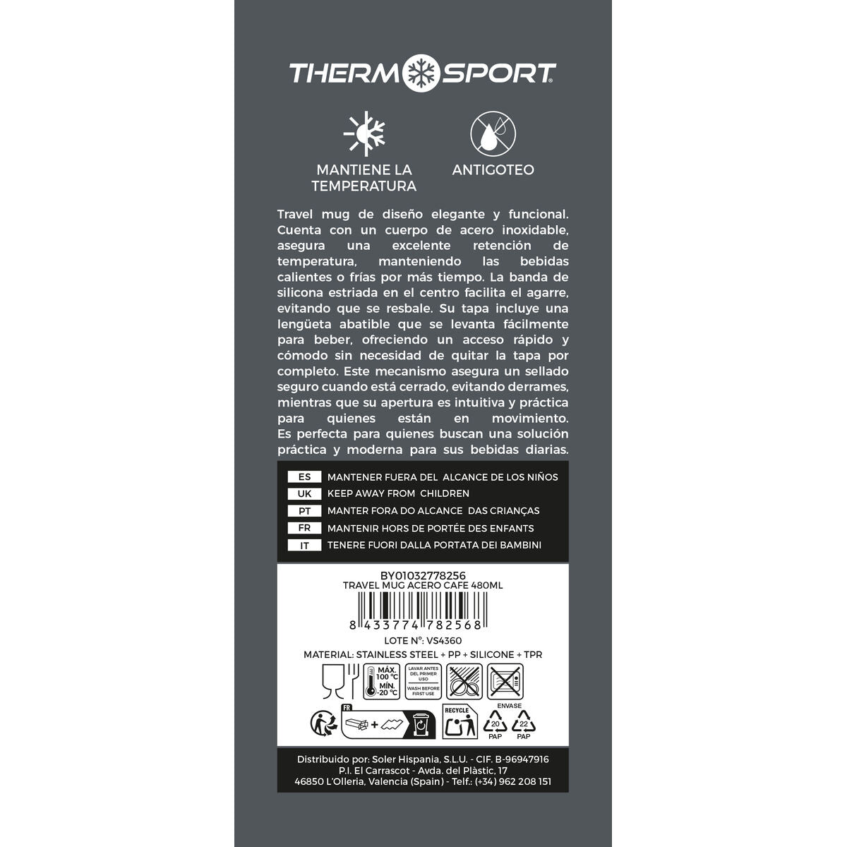 Thermal Cup with Lid ThermoSport 480 ml (9Units)