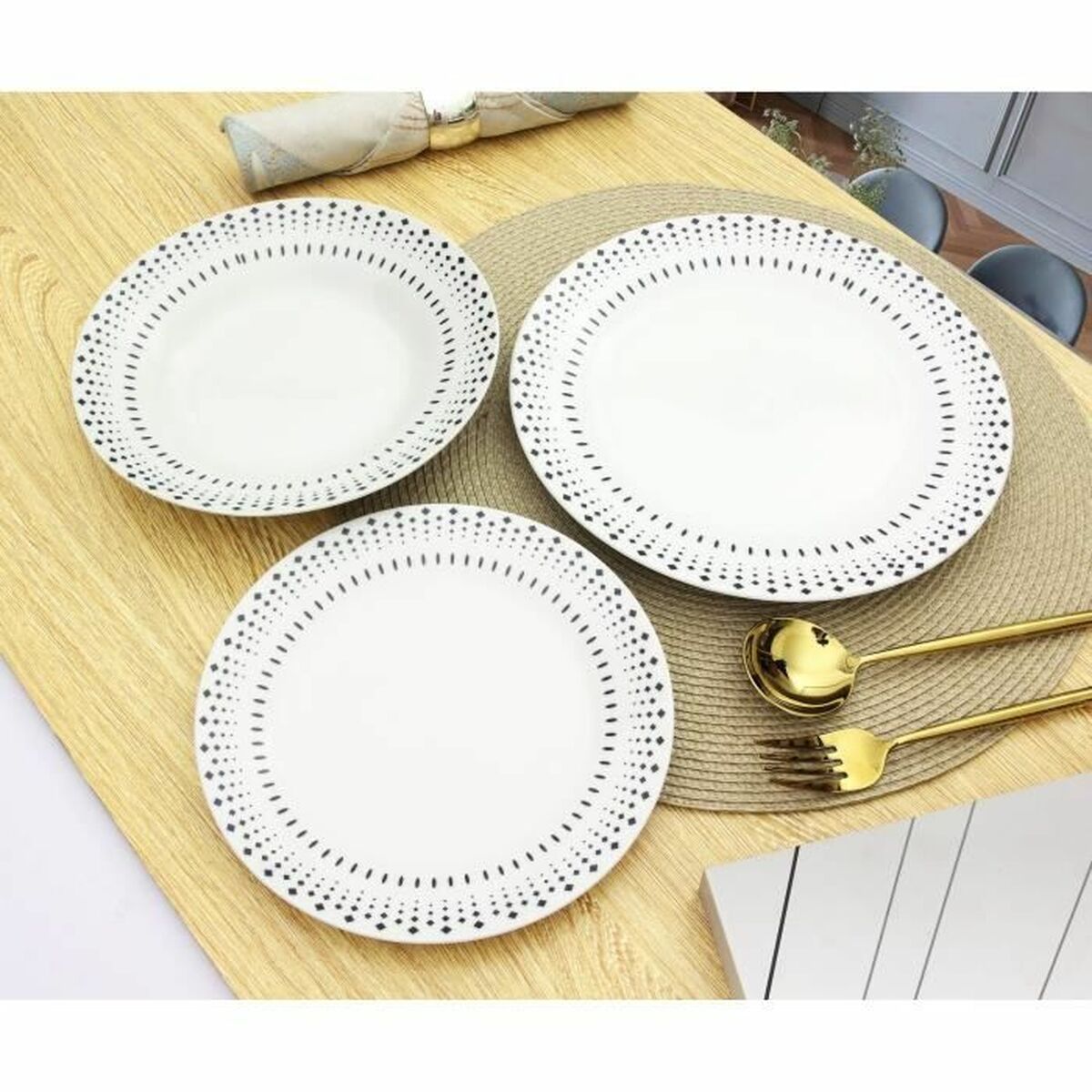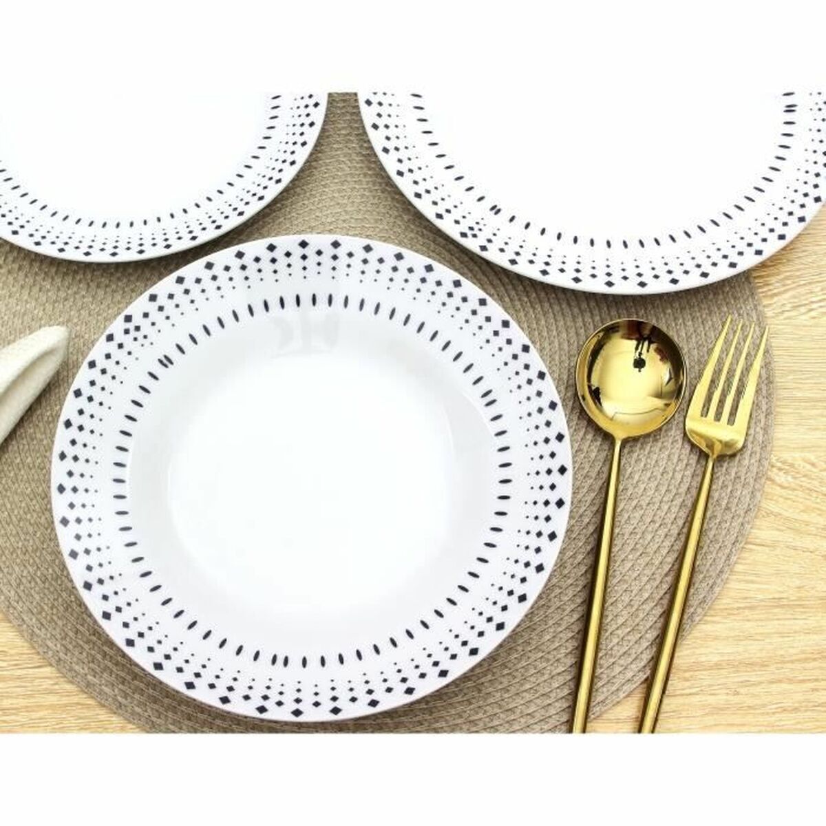 Dinnerware Set Rice grain White Black Porcelain 18 Pieces