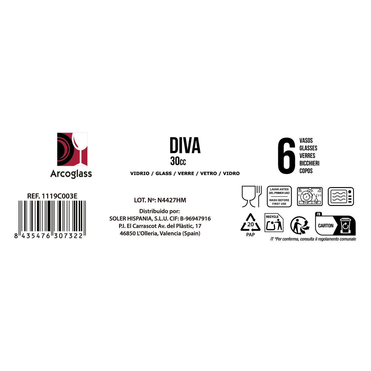 Set of Shot Glasses La Mediterránea Diva Transparent Glass 30 ml 6 Pieces (12 Units)