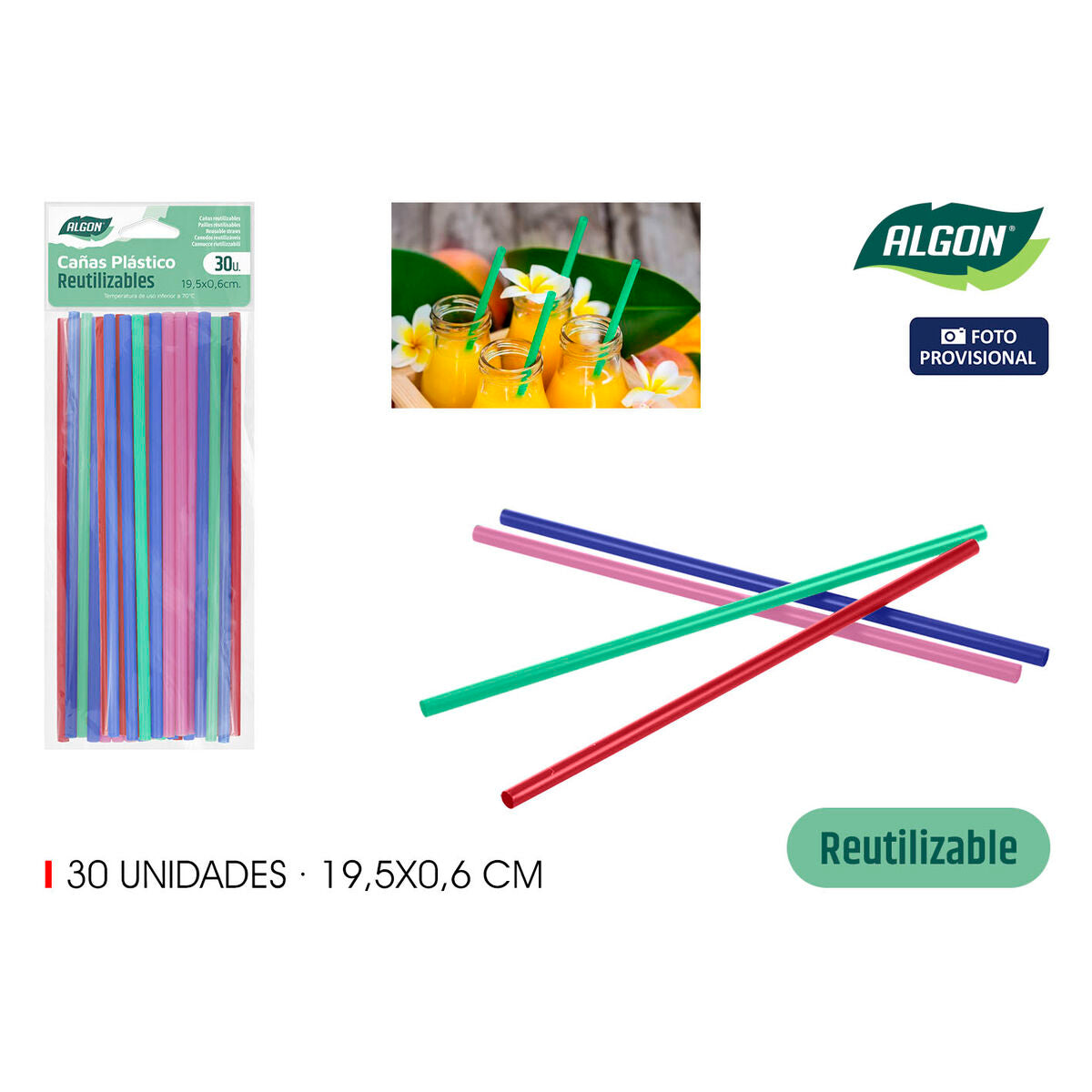 Reusable Drinking Straw Algon Plastic 19,5 cm 6 mm 30 Pieces 24 Units