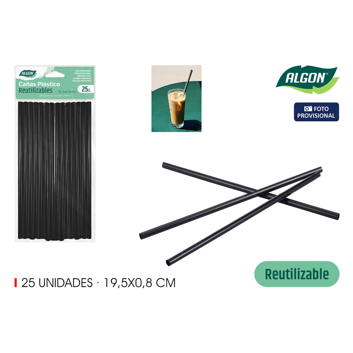 Reusable Drinking Straw Algon Plastic 19,5 cm 8 mm 25 Pieces 24 Units
