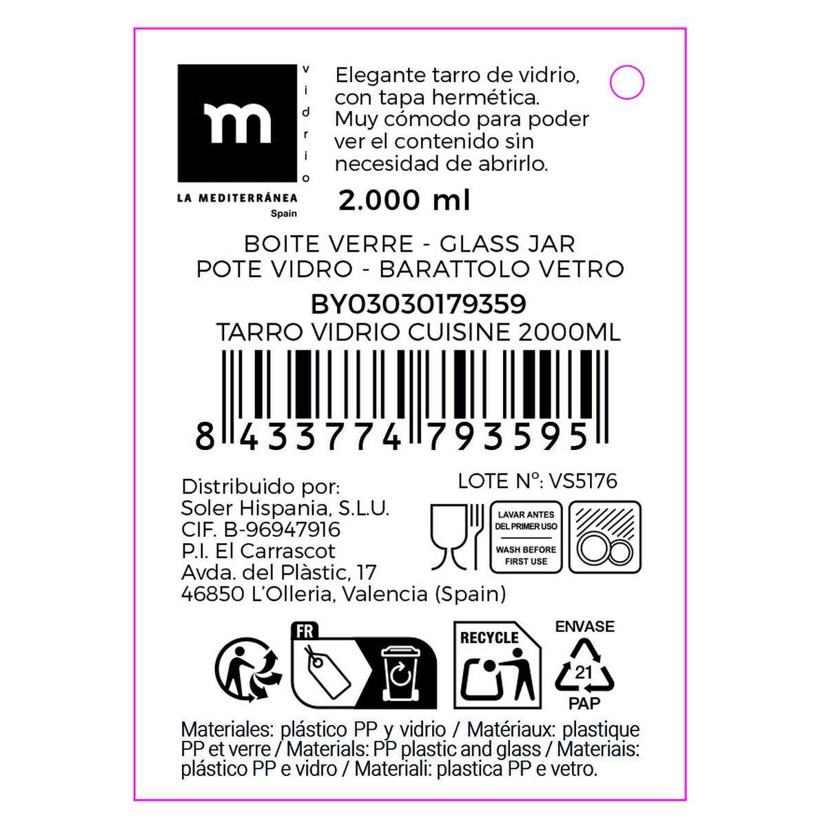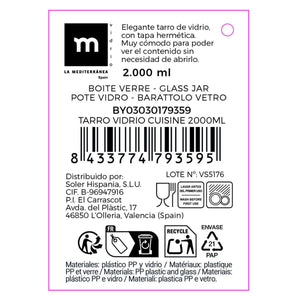 Jar La Mediterránea CUISINE Transparent 2 L (6 Units)