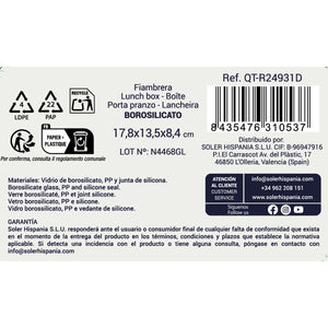 Lunch box Quttin Blue Transparent Rectangular (6 Units)