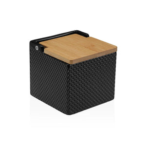 Salt Shaker with Lid Versa Black Ceramic Bamboo Dolomite 11 x 11 x 11 cm