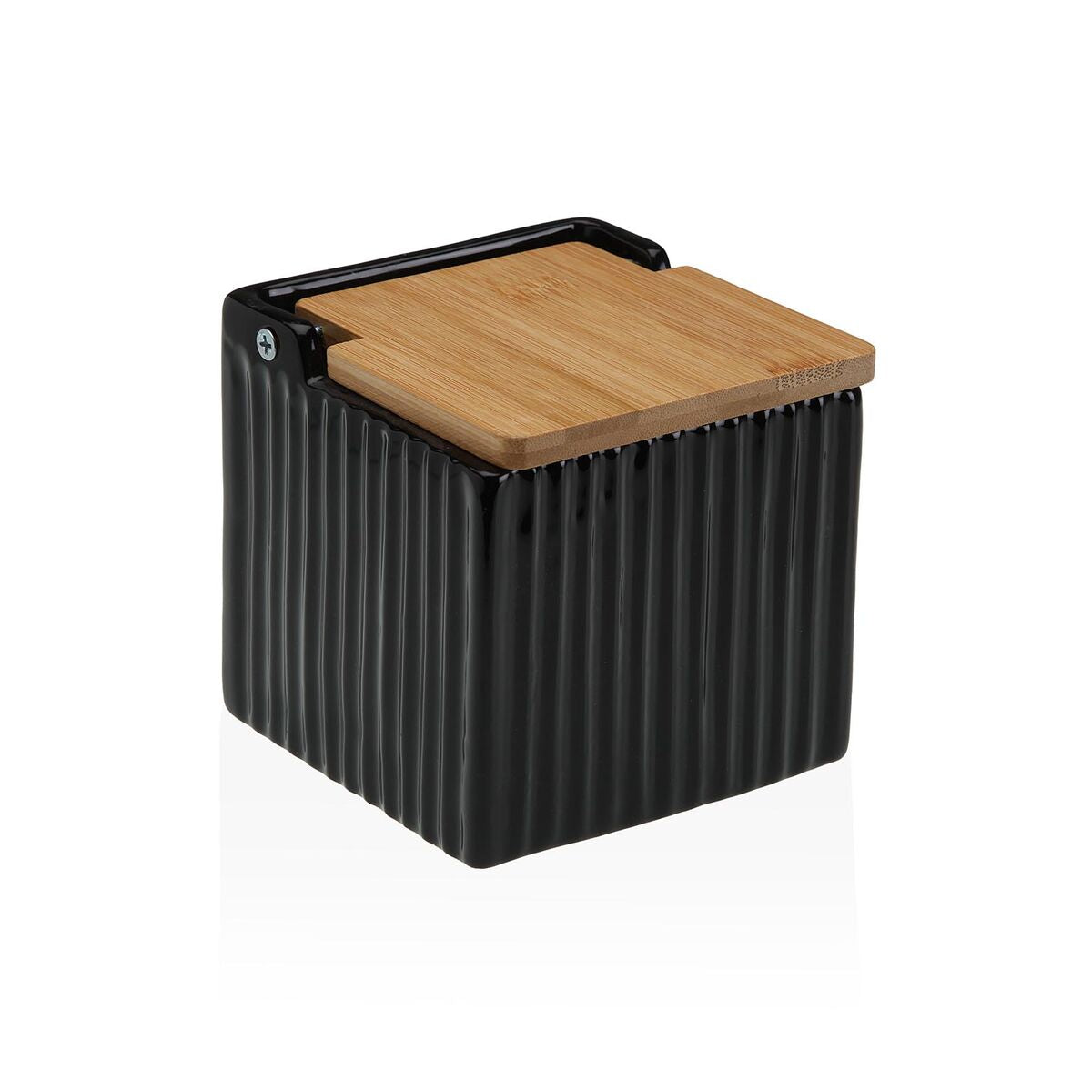 Salt Shaker with Lid Versa Black Ceramic Bamboo Dolomite 11 x 11 x 11 cm
