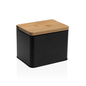 Salt Shaker with Lid Versa Black Metal Bamboo 11 x 11 x 14 cm