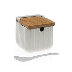 Sugar Bowl Versa White Ceramic Bamboo Dolomite 8,3 x 8,3 x 8,3 cm