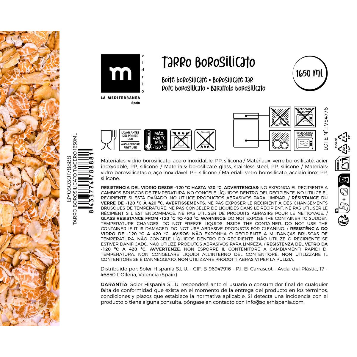 Tin La Mediterránea Transparent Silver 1,65 L (12 Units)