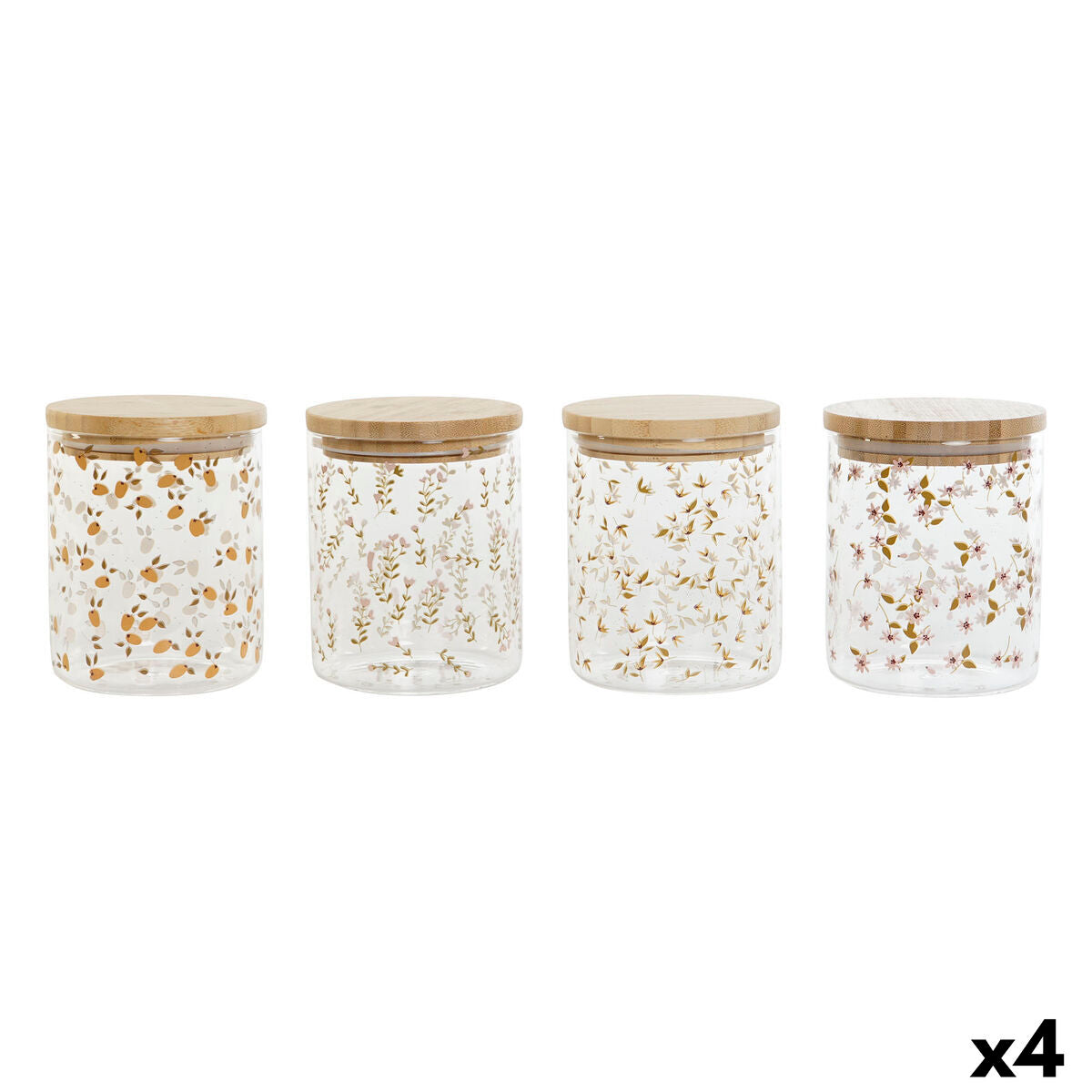 Tin DKD Home Decor Bamboo Borosilicate Glass Shabby Chic 700 ml 10 x 10 x 12,5 cm (4 Units)