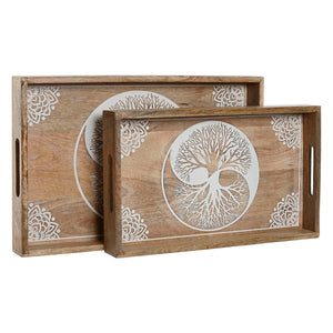 Snack tray Home ESPRIT White Natural Tree Indian Man Stripped 43,5 x 27 x 5,5 cm (2 Units)