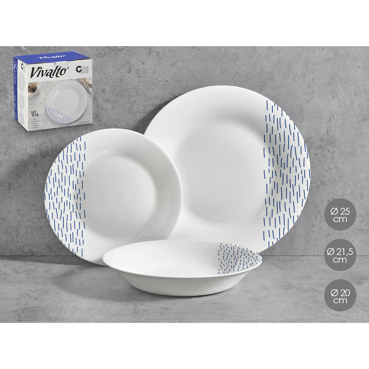 Tableware Vivalto Blue White Opaline glass Rain 18 Pieces (2 Units)