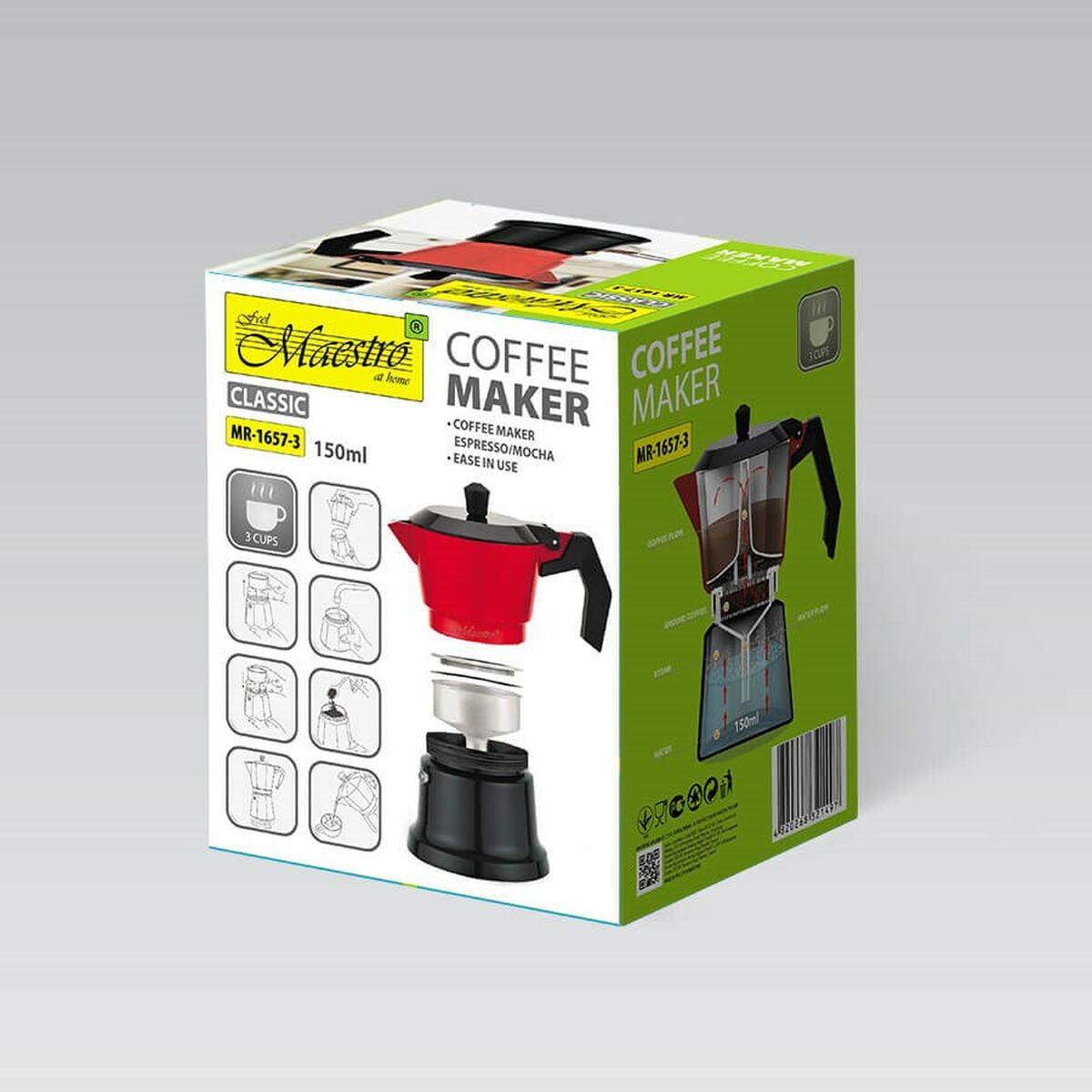 Italian Coffee Pot Feel Maestro MR-1657-3 Black Red Aluminium 150 ml 3 Cups