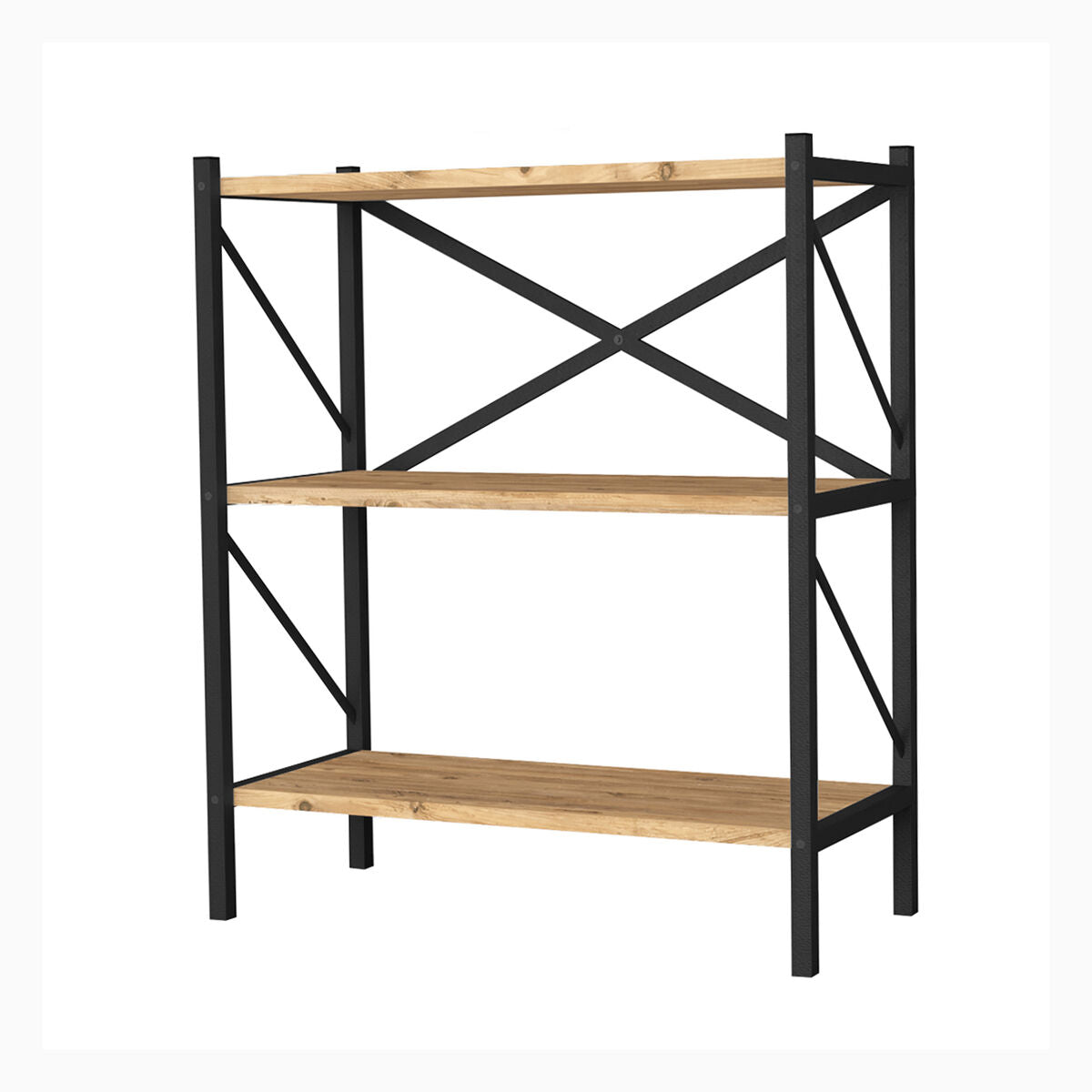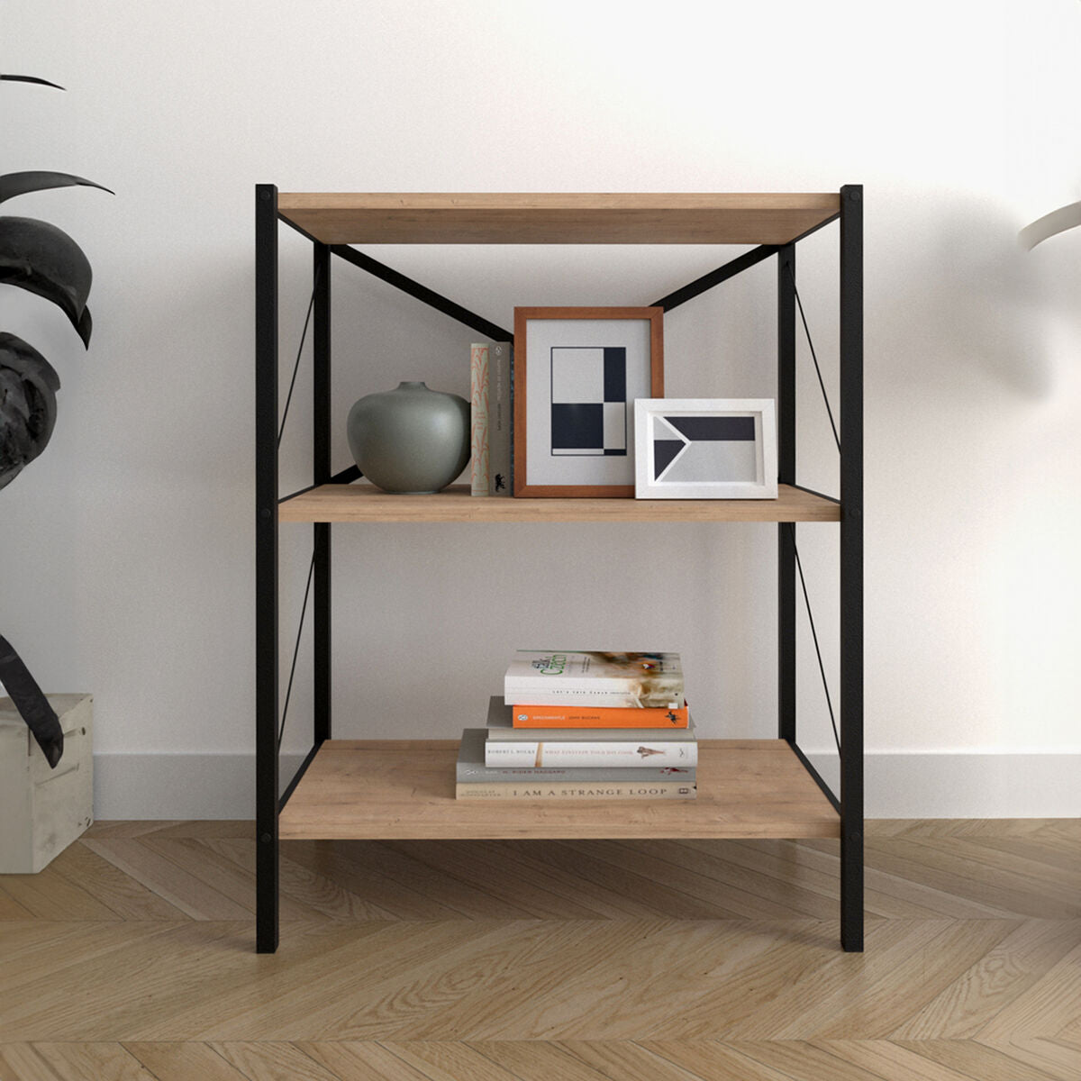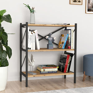 Bookshop Alexandra House Living Black Oak Metal Wood MDP 66 x 85 x 34 cm industrial 3 Shelves