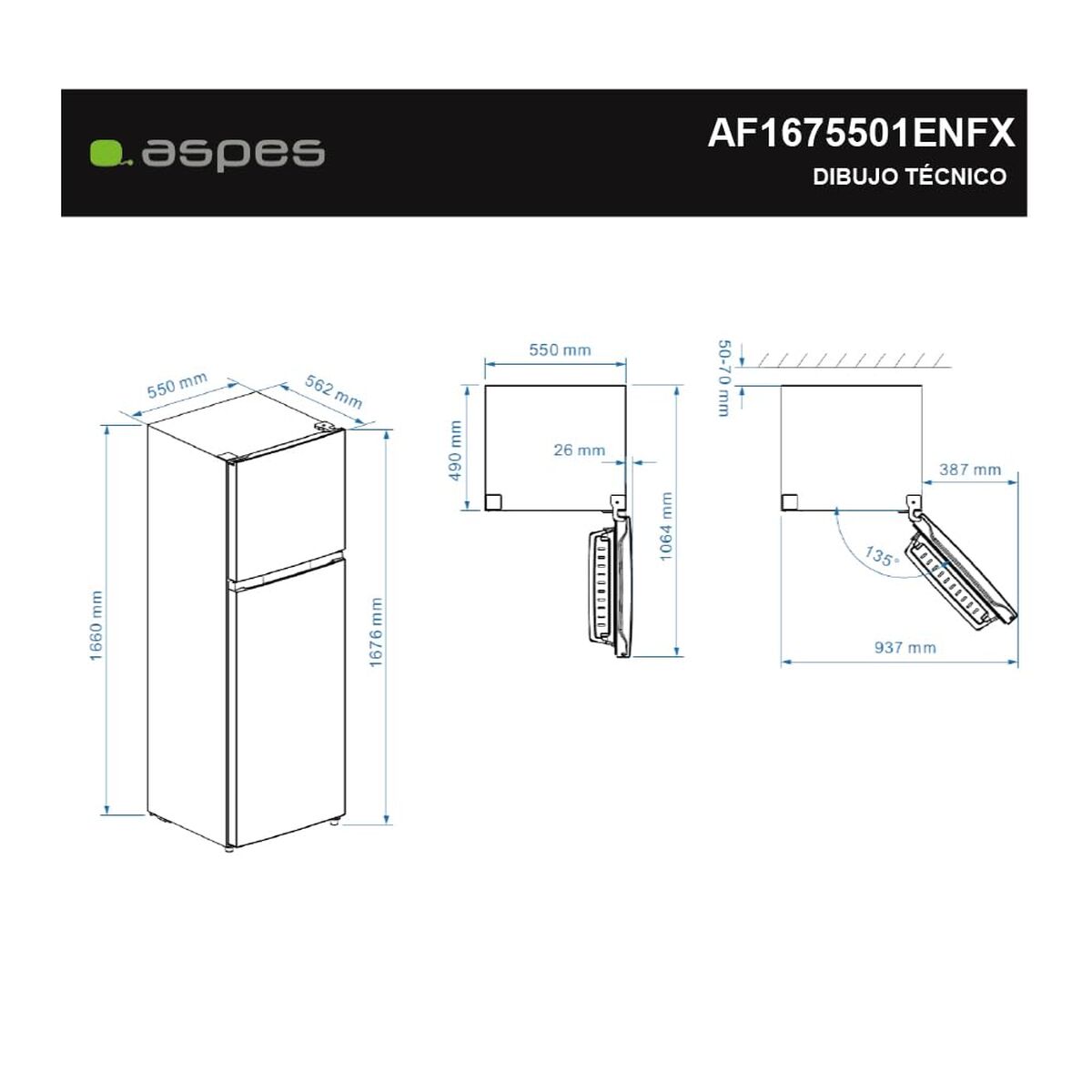 Combined Refrigerator Aspes AF1675501ENFX