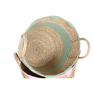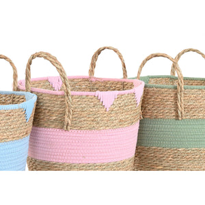 Decorative basket Home ESPRIT Blue Green Pink Natural Children's 36 x 36 x 37 cm (3 Units)