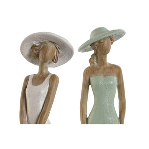 Decorative Figure Home ESPRIT White Green Lady 7,5 x 7,5 x 30 cm (2 Units)