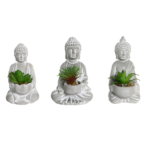 Decorative Plant Home ESPRIT Polyethylene Cement Buddha Oriental 10,5 x 8 x 16 cm (3 Units)