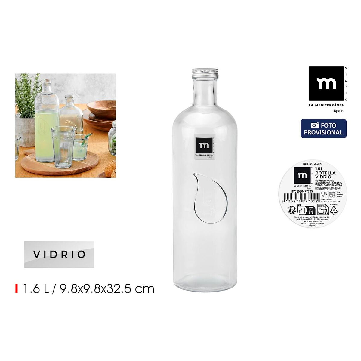 Glass Bottle La Mediterránea Metal Glass 1,6 L (12 Units)