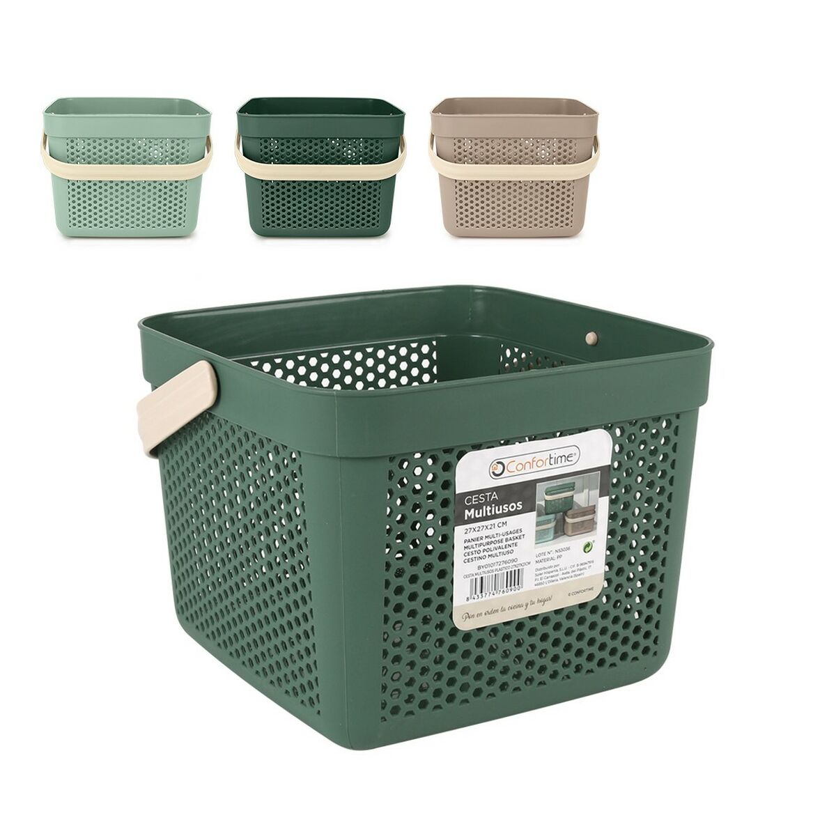 Multi-purpose basket Confortime Plastic 12 L 27 x 27 x 21 cm (12 Units)