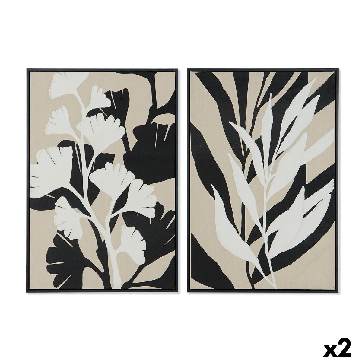Canvas Home ESPRIT White Black Beige Leaf of a plant Urban 63 x 4,3 x 93 cm (2 Units)
