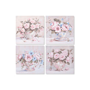 Painting Home ESPRIT White Pink Roses Romantic 60 x 3 x 60 cm (4 Units)