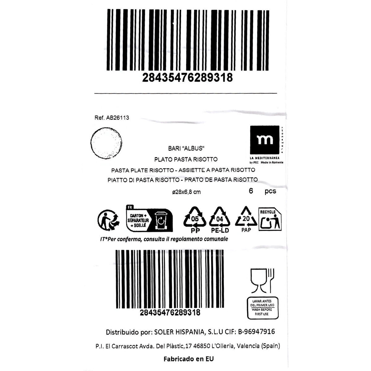 {"id":7747767304271,"title":"Pasta Dish La Mediterránea Albus Ø 28 cm (6 Units)","handle":"pasta-dish-la-mediterranea-albus-o-28-cm-6-units","description":"If you like to take care of every detail in your home and own the latest products that will make your life easier, purchase \u003cb\u003ePasta Dish La Mediterránea Albus Ø 28 cm (6 Units)\u003c\/b\u003e at the best price.\u003cbr\u003e\u003cbr\u003e\u003cul\u003e\n\u003cli\u003eType: Pasta Dish\u003c\/li\u003e\n\u003cli\u003eUnits: 6 Units\u003c\/li\u003e\n\u003cli\u003eApprox. diameter: Ø 28 cm\u003c\/li\u003e\n\u003c\/ul\u003e\u003cb\u003eFrom 5,08 \/ u\u003c\/b\u003e\u003cbr\u003e\u003cbr\u003e\u003cb\u003eGeneral Product Safety Regulations information:\u003c\/b\u003e\u003cbr\u003eSOLER HISPANIA S.L.U.\u003cbr\u003eAVDA. DEL PLASTIC 17, OLLERIA, VALENCIA (SPAIN)\u003cbr\u003e46850 - Olleria\u003cbr\u003e+34962208151\u003cbr\u003einfo@solerhispania.com\u003cbr\u003ehttps:\/\/www.solerhispania.com\u003cbr\u003e","published_at":"2025-05-03T02:27:17+02:00","created_at":"2025-05-03T02:27:17+02:00","vendor":"La Mediterránea","type":"Home and cooking, Cutlery, crockery and glassware","tags":["Brand_La Mediterránea","category-reference-2449","category-reference-2726","Condition_NEW","hot deals","Price_20 - 50"],"price":3050,"price_min":3050,"price_max":3050,"available":false,"price_varies":false,"compare_at_price":4109,"compare_at_price_min":4109,"compare_at_price_max":4109,"compare_at_price_varies":false,"variants":[{"id":42803614810191,"title":"Default Title","option1":"Default Title","option2":null,"option3":null,"sku":"S2237336","requires_shipping":true,"taxable":true,"featured_image":null,"available":false,"name":"Pasta Dish La Mediterránea Albus Ø 28 cm (6 Units)","public_title":null,"options":["Default Title"],"price":3050,"weight":5340,"compare_at_price":4109,"inventory_management":"shopify","barcode":"4899888788102","requires_selling_plan":false,"selling_plan_allocations":[],"quantity_rule":{"min":1,"max":null,"increment":1}}],"images":["\/\/bigbuy-kitchen.myshopify.com\/cdn\/shop\/files\/s2237336_1746182358-remove-background_icon1.jpg?v=1766179640","\/\/bigbuy-kitchen.myshopify.com\/cdn\/shop\/files\/S2237336_P01.jpg?v=1766179640","\/\/bigbuy-kitchen.myshopify.com\/cdn\/shop\/files\/S2237336_P11.jpg?v=1766179640","\/\/bigbuy-kitchen.myshopify.com\/cdn\/shop\/files\/S2237336_1746182358-remove-background1.jpg?v=1766179640"],"featured_image":"\/\/bigbuy-kitchen.myshopify.com\/cdn\/shop\/files\/s2237336_1746182358-remove-background_icon1.jpg?v=1766179640","options":["Title"],"media":[{"alt":"V6H2FB39CCC603B3F47020542BD5F361677R5648132P1","id":33390502936655,"position":1,"preview_image":{"aspect_ratio":1.0,"height":1200,"width":1200,"src":"\/\/bigbuy-kitchen.myshopify.com\/cdn\/shop\/files\/s2237336_1746182358-remove-background_icon1.jpg?v=1766179640"},"aspect_ratio":1.0,"height":1200,"media_type":"image","src":"\/\/bigbuy-kitchen.myshopify.com\/cdn\/shop\/files\/s2237336_1746182358-remove-background_icon1.jpg?v=1766179640","width":1200},{"alt":"V6H264A7D6315F52296B26D1FED1DE9DFFFR5648133P2","id":33390502969423,"position":2,"preview_image":{"aspect_ratio":1.0,"height":1200,"width":1200,"src":"\/\/bigbuy-kitchen.myshopify.com\/cdn\/shop\/files\/S2237336_P01.jpg?v=1766179640"},"aspect_ratio":1.0,"height":1200,"media_type":"image","src":"\/\/bigbuy-kitchen.myshopify.com\/cdn\/shop\/files\/S2237336_P01.jpg?v=1766179640","width":1200},{"alt":"V6HBA4F7D3FB4CCA76C9529D05C6DCE3F60R5648134P3","id":33390503002191,"position":3,"preview_image":{"aspect_ratio":1.0,"height":1200,"width":1200,"src":"\/\/bigbuy-kitchen.myshopify.com\/cdn\/shop\/files\/S2237336_P11.jpg?v=1766179640"},"aspect_ratio":1.0,"height":1200,"media_type":"image","src":"\/\/bigbuy-kitchen.myshopify.com\/cdn\/shop\/files\/S2237336_P11.jpg?v=1766179640","width":1200},{"alt":"V6H2D577191959493945B1B5D6792B05B0AR5648136P4","id":33390503034959,"position":4,"preview_image":{"aspect_ratio":1.0,"height":1200,"width":1200,"src":"\/\/bigbuy-kitchen.myshopify.com\/cdn\/shop\/files\/S2237336_1746182358-remove-background1.jpg?v=1766179640"},"aspect_ratio":1.0,"height":1200,"media_type":"image","src":"\/\/bigbuy-kitchen.myshopify.com\/cdn\/shop\/files\/S2237336_1746182358-remove-background1.jpg?v=1766179640","width":1200}],"requires_selling_plan":false,"selling_plan_groups":[],"content":"If you like to take care of every detail in your home and own the latest products that will make your life easier, purchase \u003cb\u003ePasta Dish La Mediterránea Albus Ø 28 cm (6 Units)\u003c\/b\u003e at the best price.\u003cbr\u003e\u003cbr\u003e\u003cul\u003e\n\u003cli\u003eType: Pasta Dish\u003c\/li\u003e\n\u003cli\u003eUnits: 6 Units\u003c\/li\u003e\n\u003cli\u003eApprox. diameter: Ø 28 cm\u003c\/li\u003e\n\u003c\/ul\u003e\u003cb\u003eFrom 5,08 \/ u\u003c\/b\u003e\u003cbr\u003e\u003cbr\u003e\u003cb\u003eGeneral Product Safety Regulations information:\u003c\/b\u003e\u003cbr\u003eSOLER HISPANIA S.L.U.\u003cbr\u003eAVDA. DEL PLASTIC 17, OLLERIA, VALENCIA (SPAIN)\u003cbr\u003e46850 - Olleria\u003cbr\u003e+34962208151\u003cbr\u003einfo@solerhispania.com\u003cbr\u003ehttps:\/\/www.solerhispania.com\u003cbr\u003e"}
