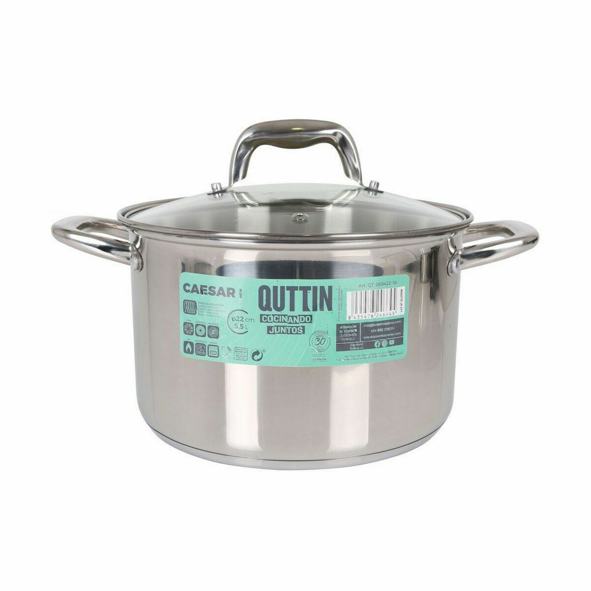 Pot with Glass Lid Quttin Caesar Steel ø 22 x 14,5 cm (4 Units)