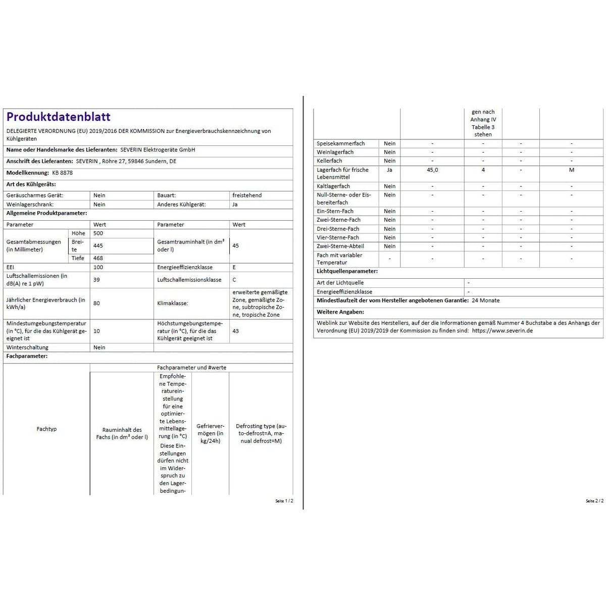 Refrigerator Severin KB8878 48 Silver