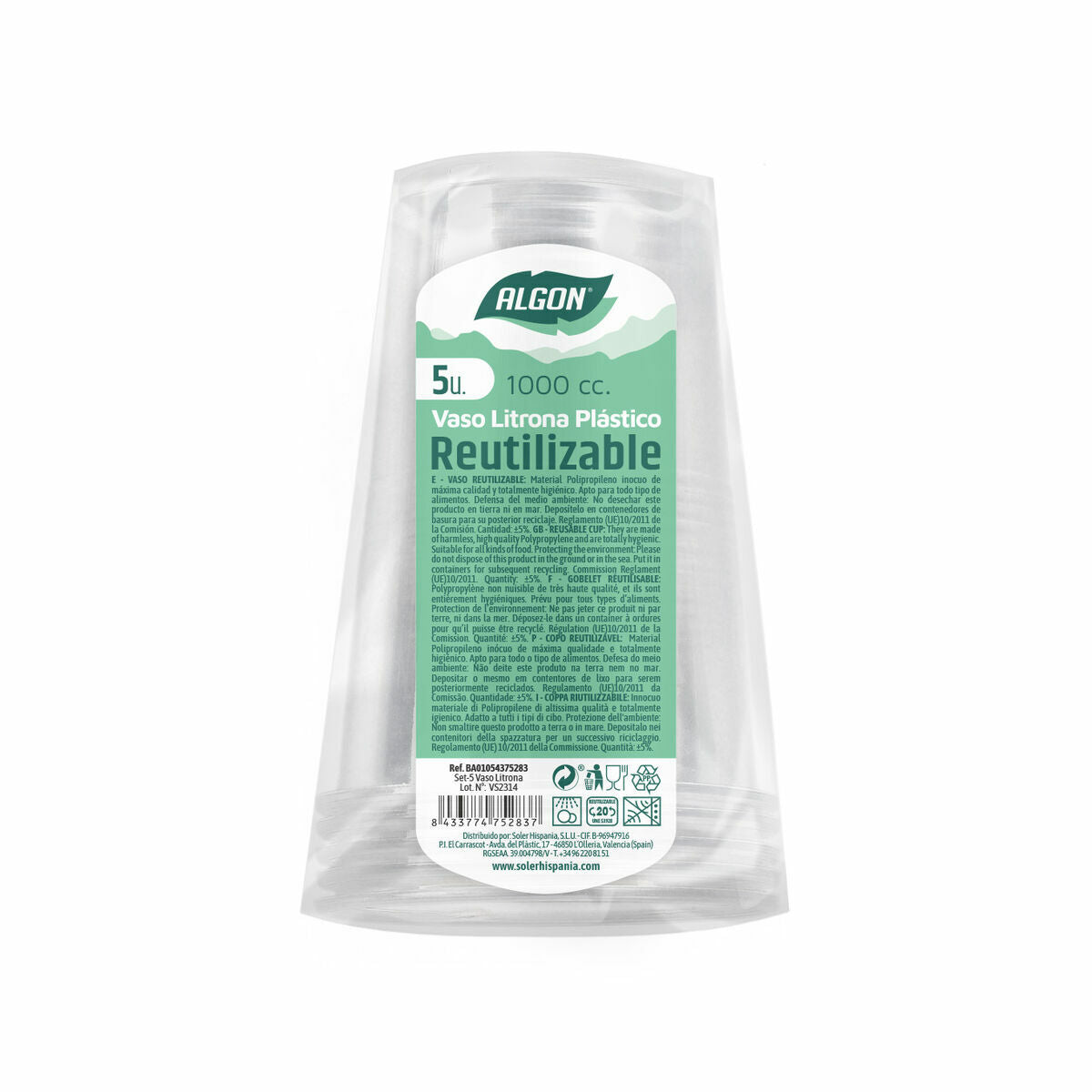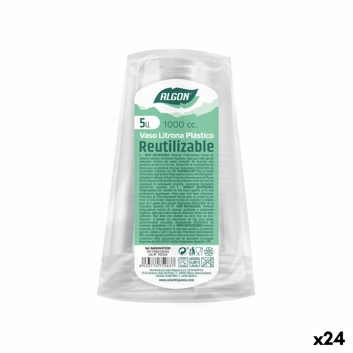 Set of reusable glasses Algon 1 L Transparent 24 Units (5 Pieces)