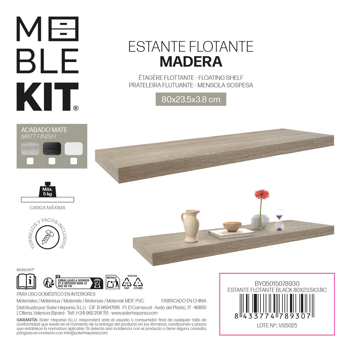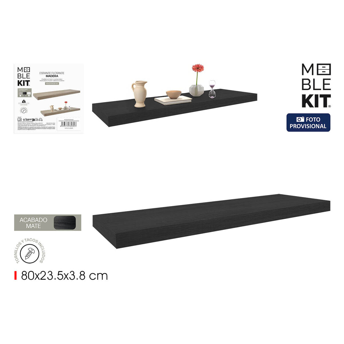 Shelve MobleKit Black Wood 80 x 23,5 x 3,8 cm (6 Units)