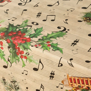 Stain-proof resined tablecloth Belum Christmas Sheet Music Black Red Green Linen 150 x 150 cm