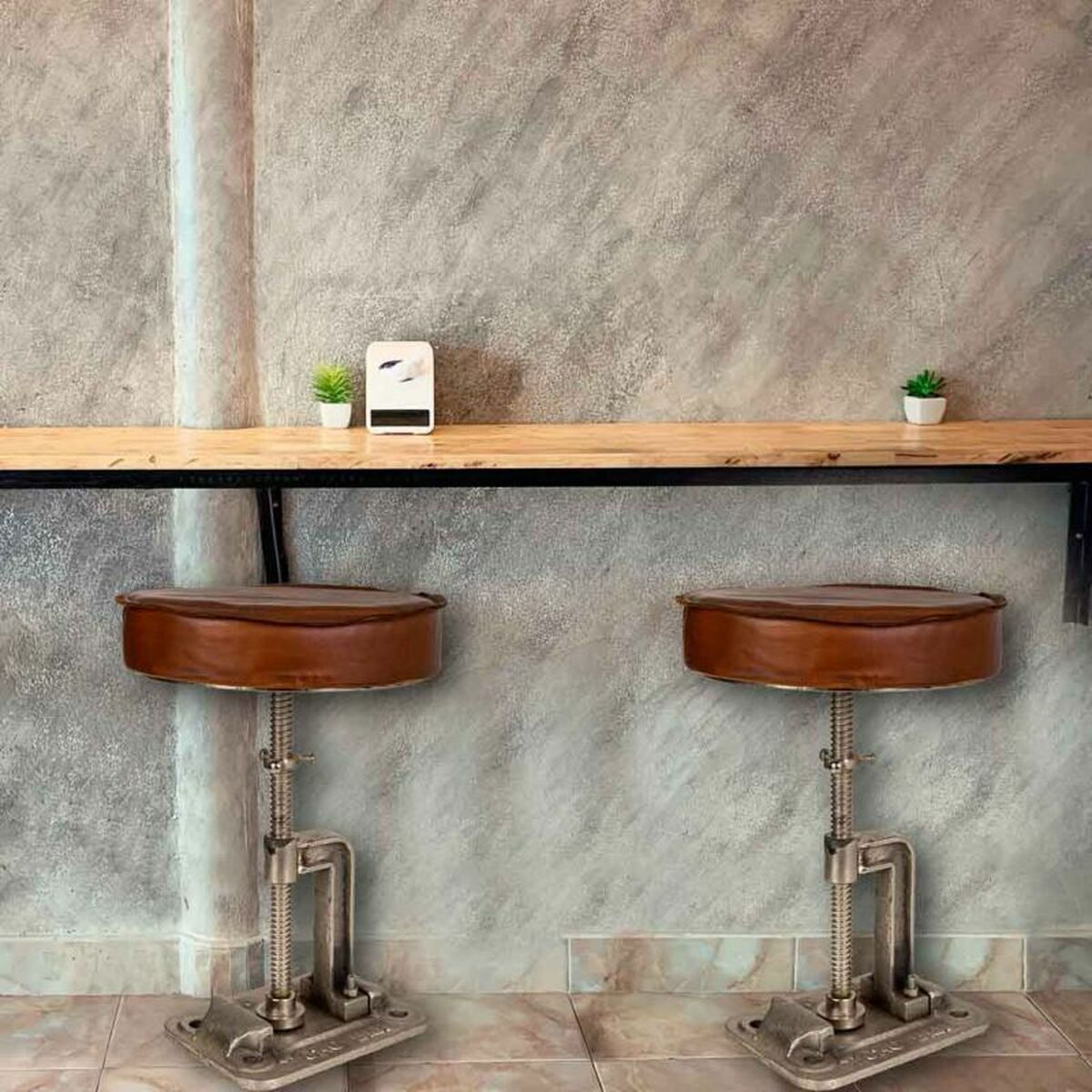 Stool Home ESPRIT Leather Iron