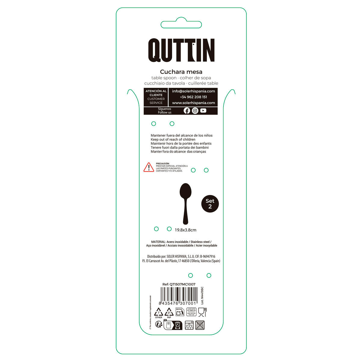 Table spoon Quttin MOMA Black 19,8 x 3,8 cm 2 Pieces (12 Units)