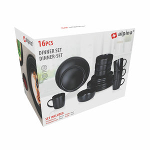 Tableware Alpina Black Ceramic 16 Pieces (4 Units)