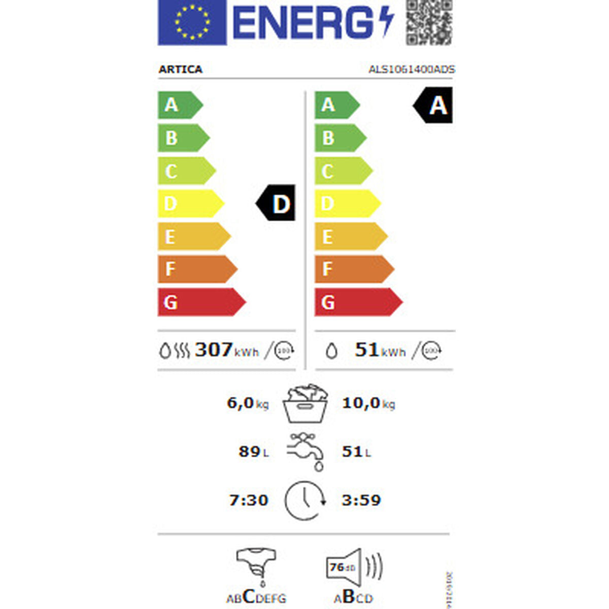 Washer - Dryer Artica ALS1061400ADS 6 Kg 1400 rpm